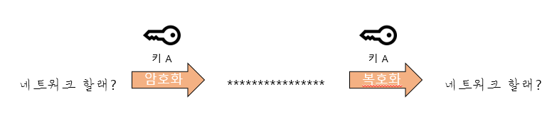 - 대칭키 암호화 방식은 암호화시에 사용하는 암호화키, 복호화시 사용하는 복호화키가 동일한 방식이다.